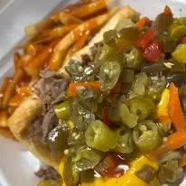 All entrees are served 'Chicago Style', that means with fries as a side.